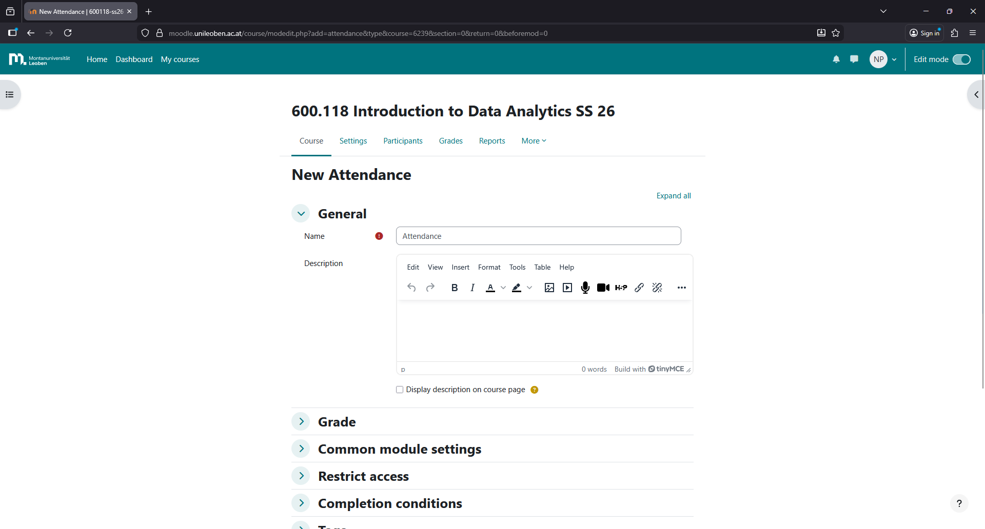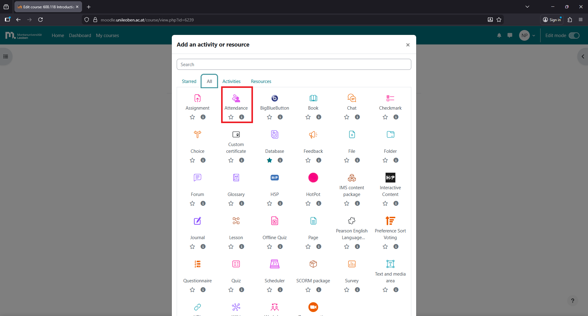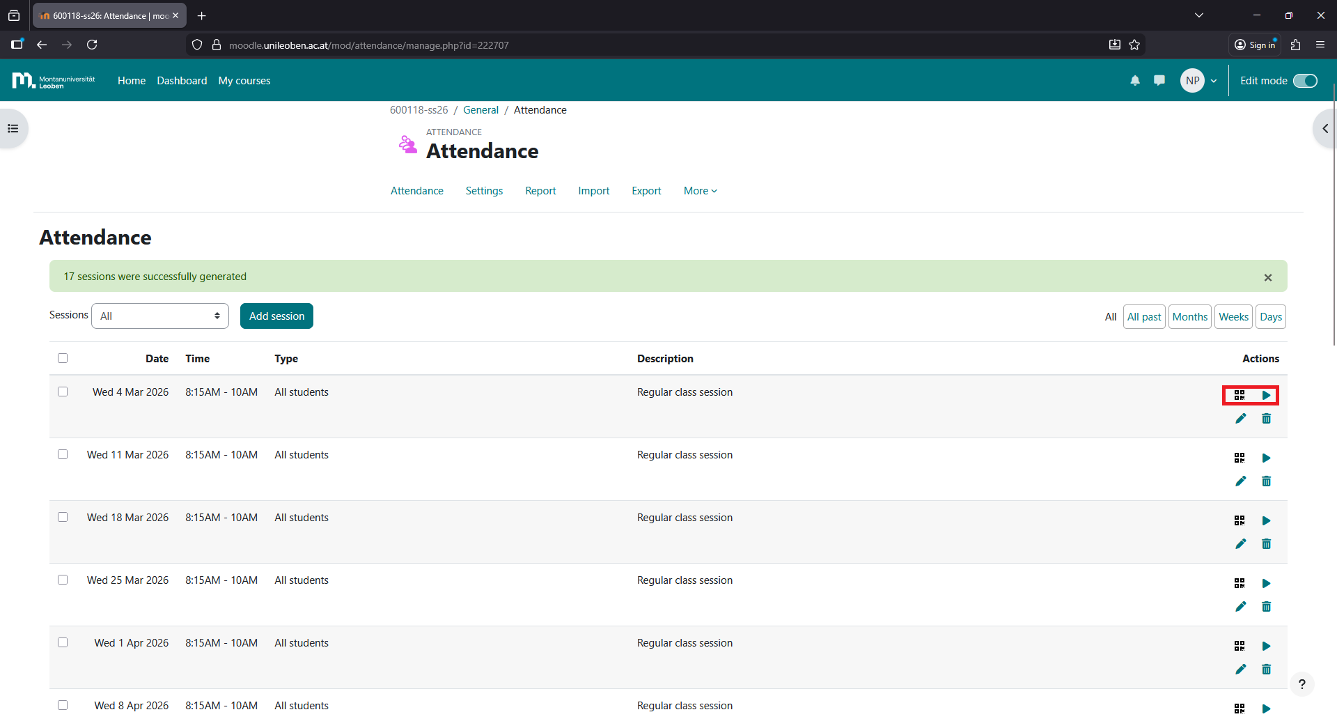 Click on the attendance activity you just created.