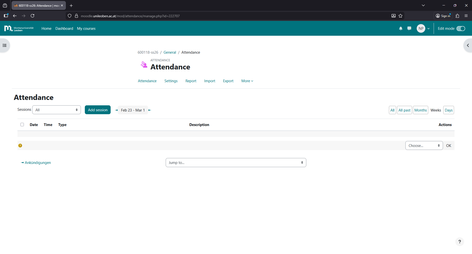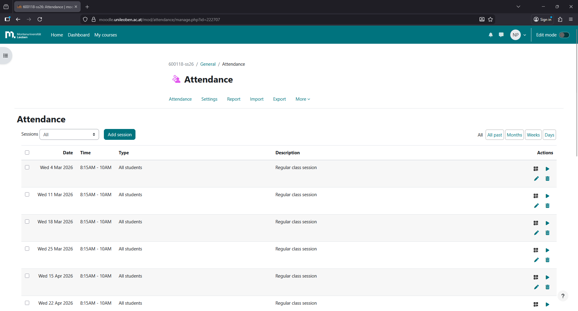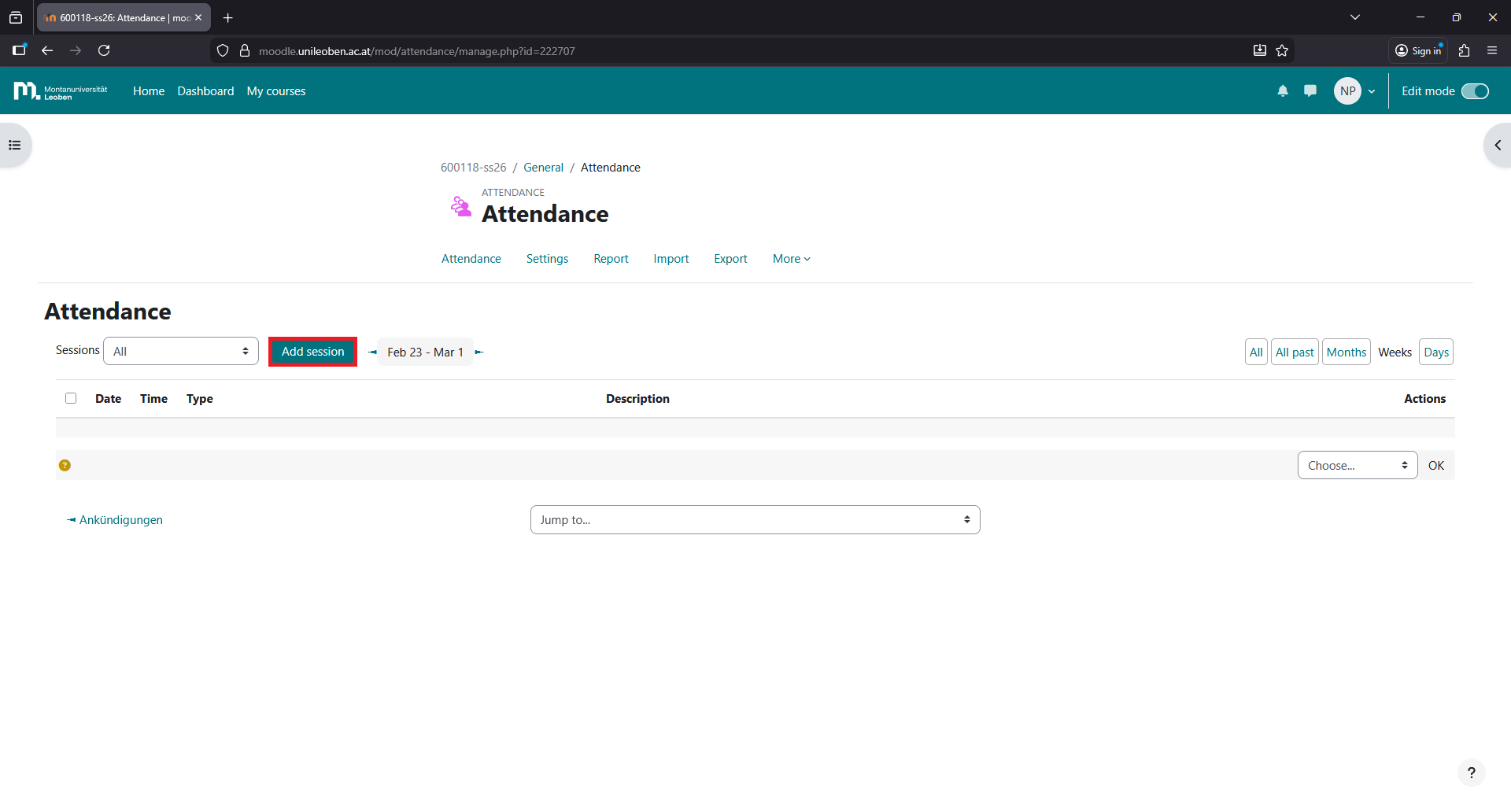 Click on “Add session”.