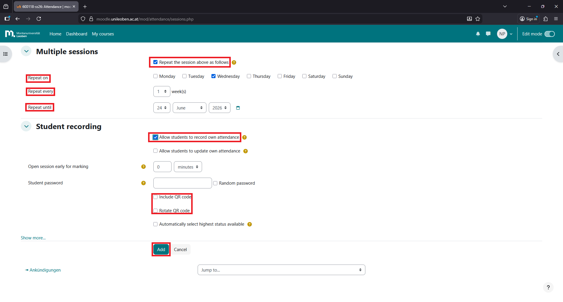 Click on “Include QR code” and “Rotate QR code”. Then click “Add”.